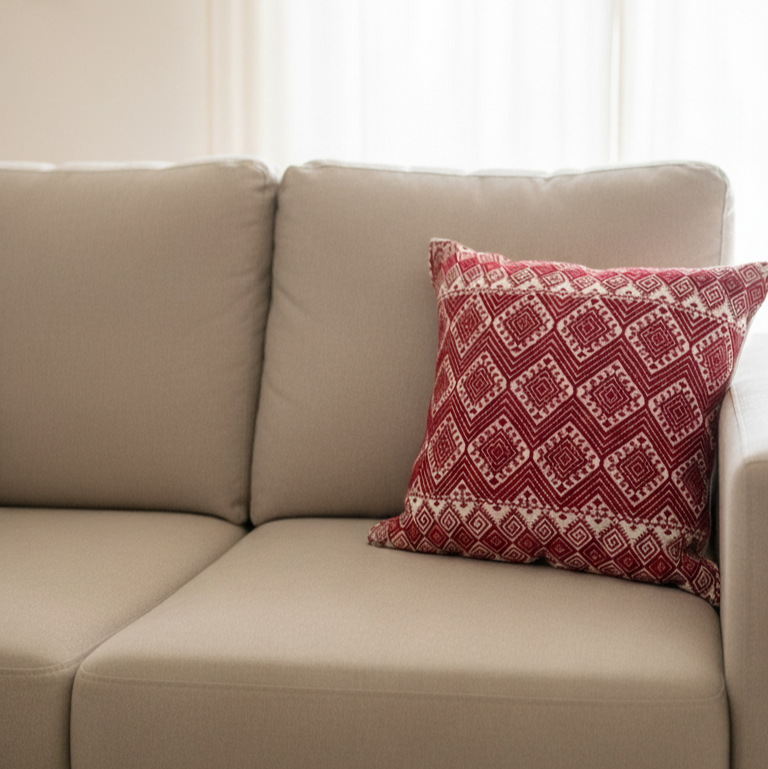 Funda de cojín hecho en telar a la cintura, ideal para dar un toque lleno de color a tus espacios.